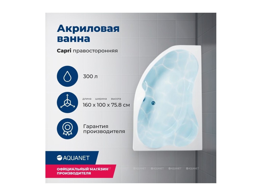 Даже в маленькой ванной комнате теперь можно устроить оазис безмятежности и умиротворения – акриловая ванна Capri эффективно экономит пространство, обеспечивая максимальный комфорт на площади порядка 2-х квадратных метров. Плавные, округлые формы чаши со специальным углом наклона спинки для наибольшей релаксации мышц помогут вам отбросить все мысли и тревоги, ощутить, наконец, полное расслабление всего тела. Специальный выступ сформирован в виде сиденья – этот незаменимый элемент облегчит принятие душа для пожилых людей. Выступы в изголовьях чаши обеспечат удержание головы сидящего над поверхностью воды. Данная ванна изготовлена в правой ориентации.