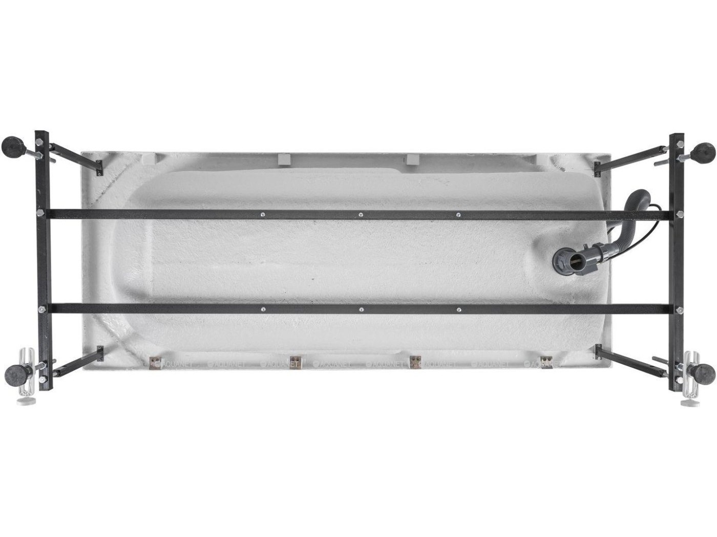 Ванна уже установлена на жесткий сварной каркас из металлического профиля. Металлические детали каркаса подвергаются трехступенчатой обработке, когда сначала профильная труба проходит абразивную зачистку на специальном станке, после чего готовые детали обрабатывают каустической содой, и, просушив, покрывают с помощью электростатического распылителя молотковой краской по металлу. Это гарантирует равномерность окрашивания и стойкость покрытия.