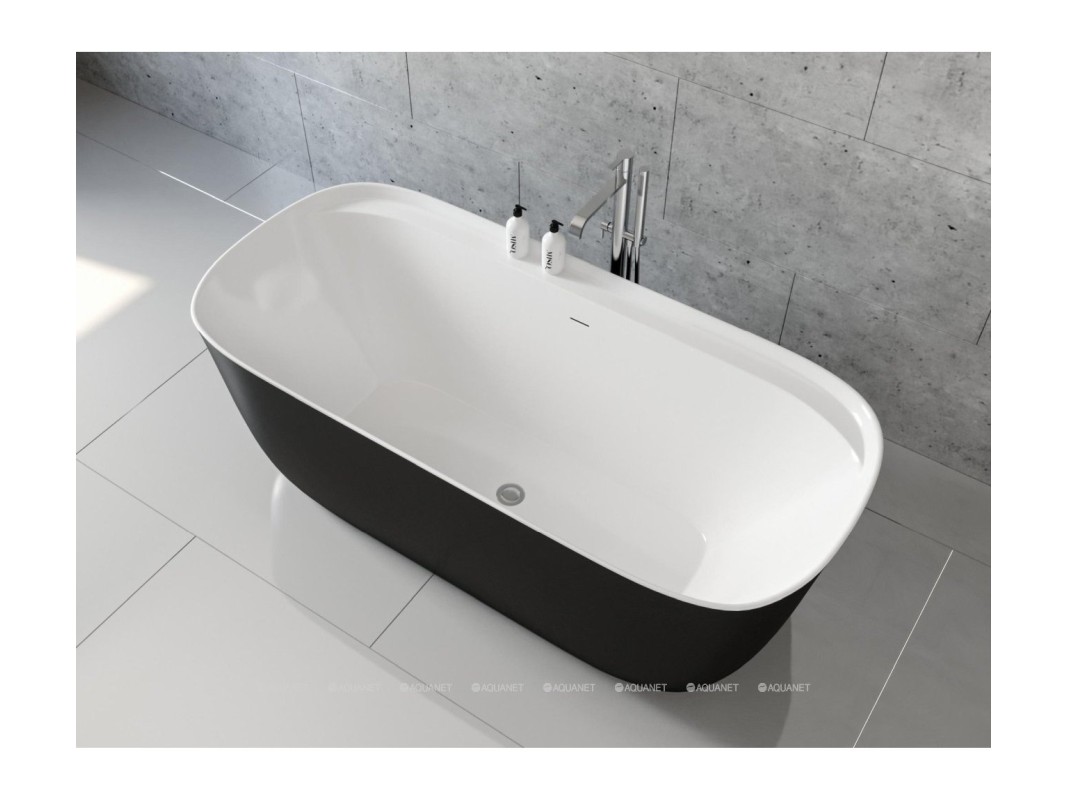 С одной стороны встроен широкий бортик, на котором удобно хранить гигиенические и банные принадлежности. В центральной части дна есть отверстие для слива. Модель устанавливают вдоль стены или в удобном месте ванной комнаты, а смеситель крепят к стене или полу. Для изготовления корпуса использован акрил — прочный, хорошо удерживающий тепло и легко очищающийся от загрязнений материал. Габариты — 170х78х60 см. Ножки для монтажа и слив-перелив входят в комплект поставки.