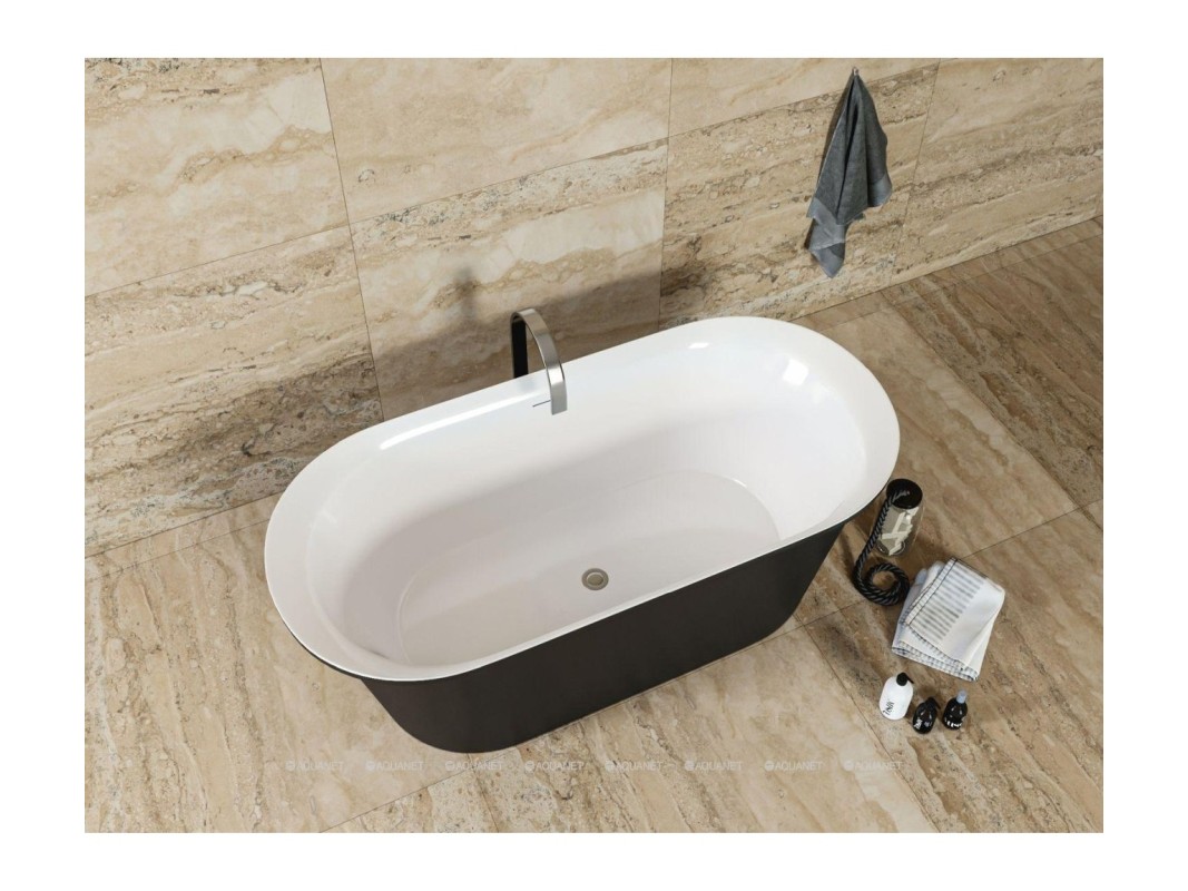 Модель овальной формы характеризуется универсальной ориентацией и может устанавливаться в любом месте ванной комнаты или вдоль стены. Монтаж смесителя проводят на стену или пол — подготовленное отверстие на бортике отсутствует. Глянцевая поверхность чаши легко отмывается от пыли и грязи проточной водой, неабразивными составами и мягкой тряпкой. Корпус сделан из хорошо сохраняющего тепло и поглощающего звук акрила. Набор поставки состоит из ножек и слива-перелива.