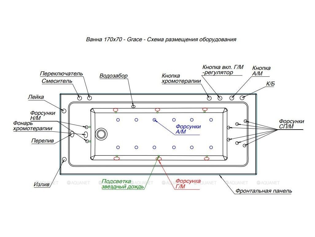 Акриловая ванна Aquanet Grace 170x70 классической прямоугольной формы отлично впишется в современный интерьер квартиры, загородного дома или гостиницы. Модель устанавливают вплотную к стене или в нишу. Материал изготовления — акрил, хорошо поглощающий звук и сохраняющий тепло. Для ухода не рекомендуется применять моющие средства, содержащие абразивные частицы. Длина составляет 170 см, ширина — 70 см. По периметру располагаются бортики, которые помогут подняться после водной процедуры или разместить шампунь, гель для душа и мочалку. Белоснежная чаша глубиной 432 мм позволяет набрать максимальное при таких параметрах корпуса количество воды — 212 л.