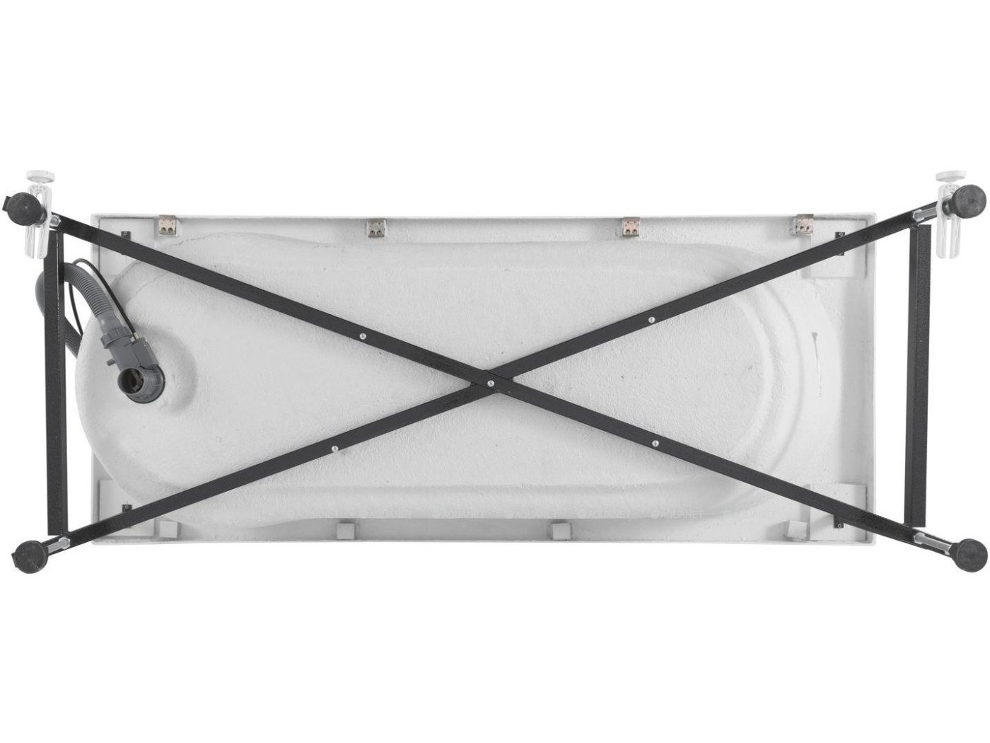 Ванна уже установлена на жесткий сварной каркас из металлического профиля. Металлические детали каркаса подвергаются трехступенчатой обработке, когда сначала профильная труба проходит абразивную зачистку на специальном станке, после чего готовые детали обрабатывают каустической содой, и, просушив, покрывают с помощью электростатического распылителя молотковой краской по металлу. Это гарантирует равномерность окрашивания и стойкость покрытия.