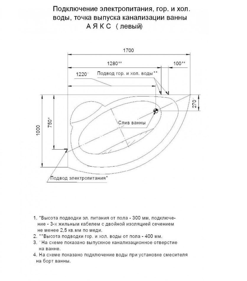 Высота ванны