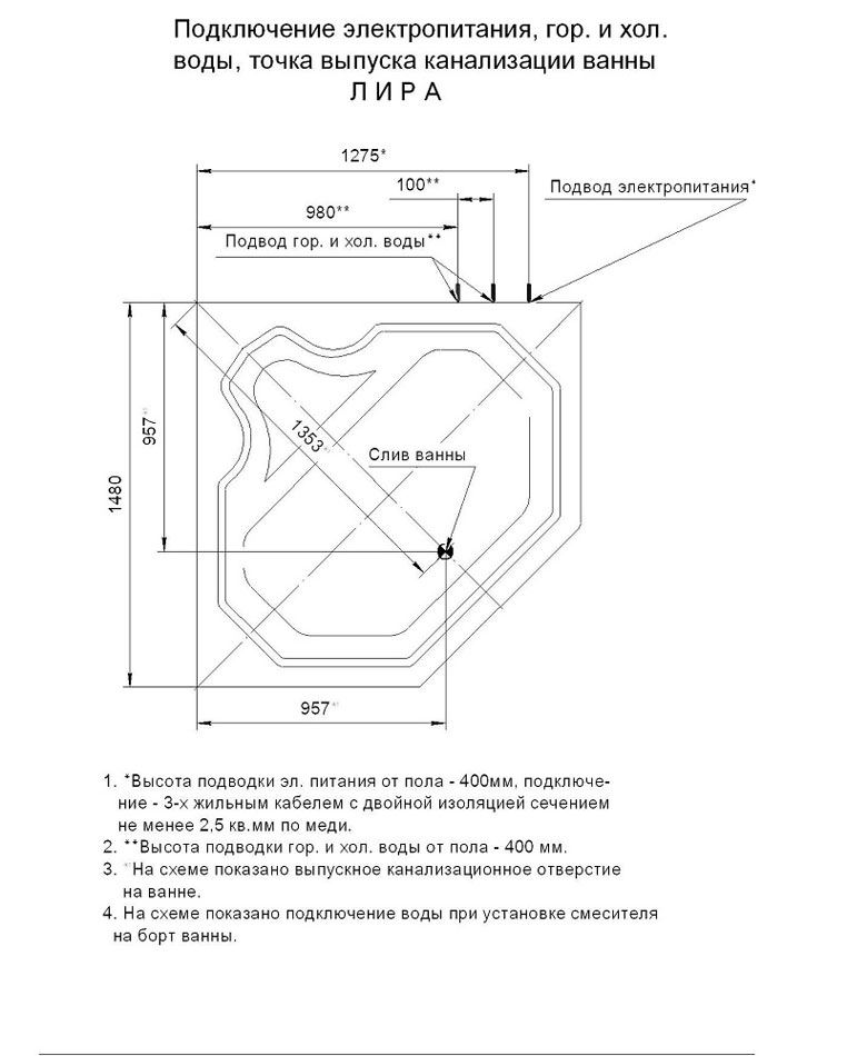 Высота ванны