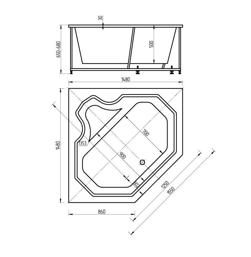 Угловая конструкция ванны