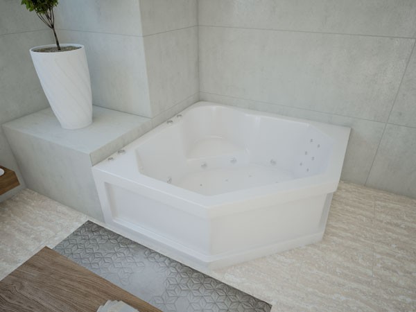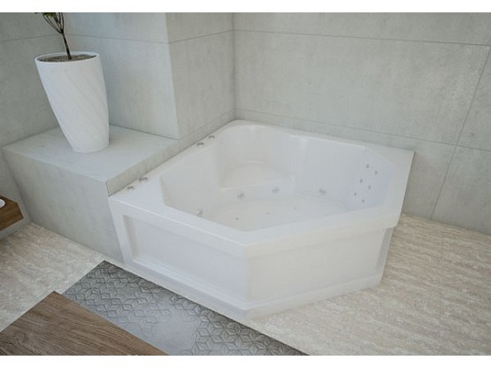В качестве материала для создания сантехники все шире используется 100% акриловый лист. Именно из этого материала изготовлена угловая ванна 148х148 Лира, которая предлагается в нашем каталоге, который позволяет длительное время сохранять привлекательный внешний вид. Все элементы подключения после монтажа изделия скрываются под декоративным экраном.