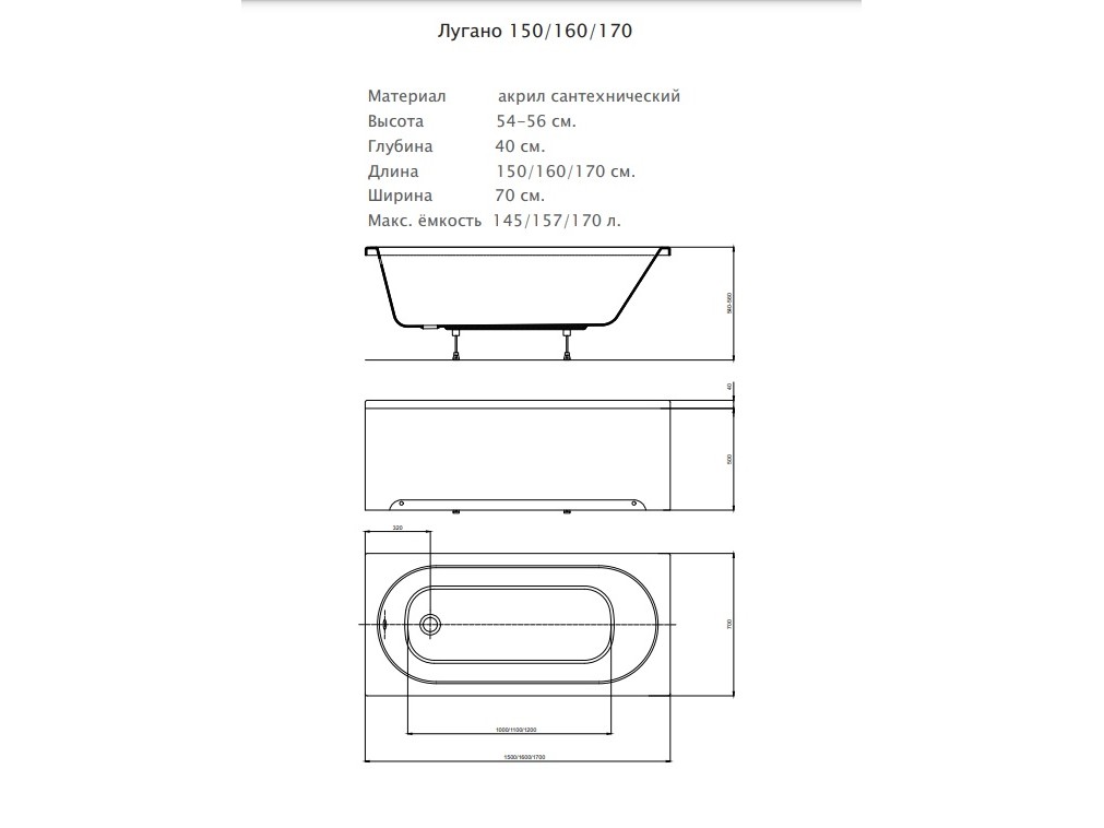 Габариты (Д Ш), см: 170х70