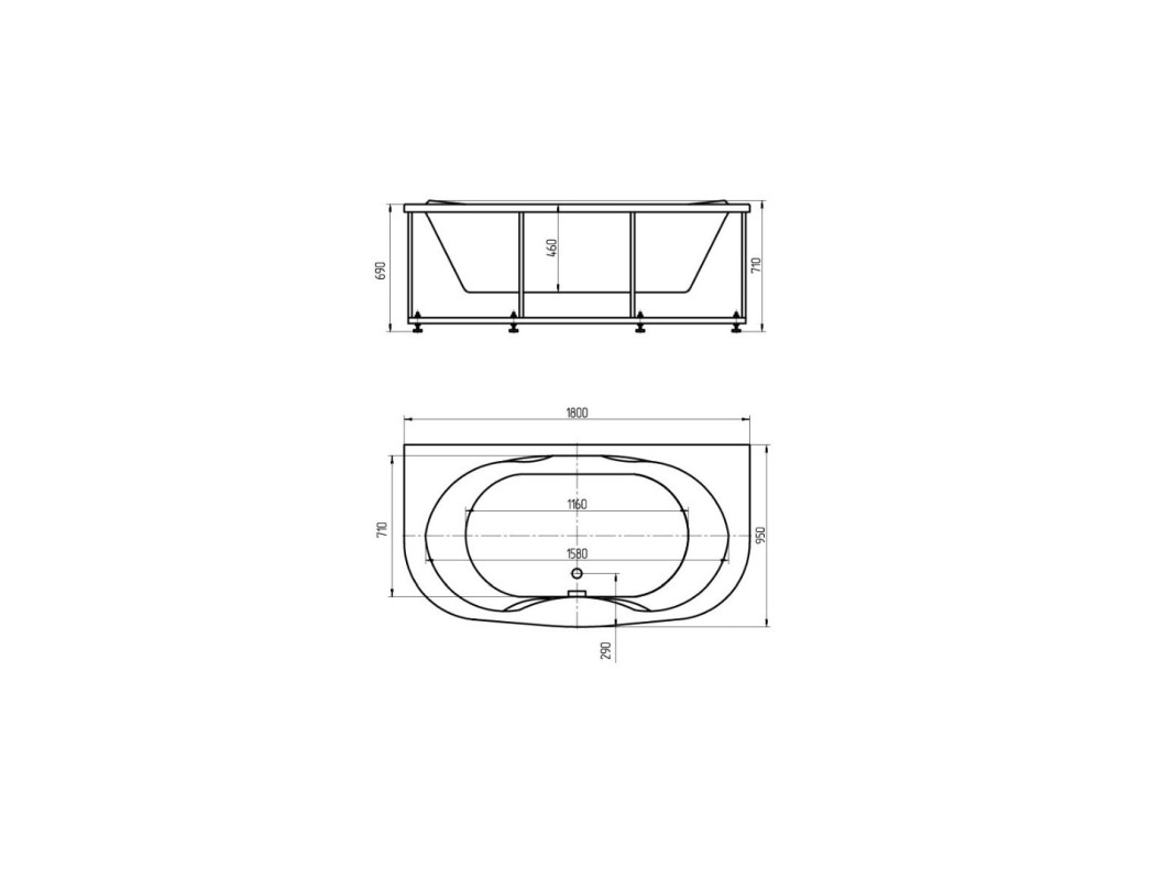 Благодаря самому широкому дну среди прямоугольных и овальных ванн нашего производства, в ванне с комфортом смогут разместиться два человека. Ванна Мелисса при своих размерах (180х95) имеет объем 300 л. Сливное отверстие, расположенное посередине ванны, эргономичная форма и наличие подлокотников с двух сторон позволят Вам установить данную ванну в любой ванной комнате.