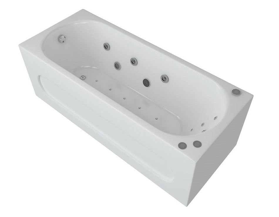 Модель удобна в установке, впишется в типовую ванную комнату и даже в санузел меньших размеров. Имеет объем 195 литров, позволяет контролировать расход воды. Хорошая практика – дополнить покупку фронтальной панелью, с ней ванна будет выглядеть еще лучше и интереснее.
