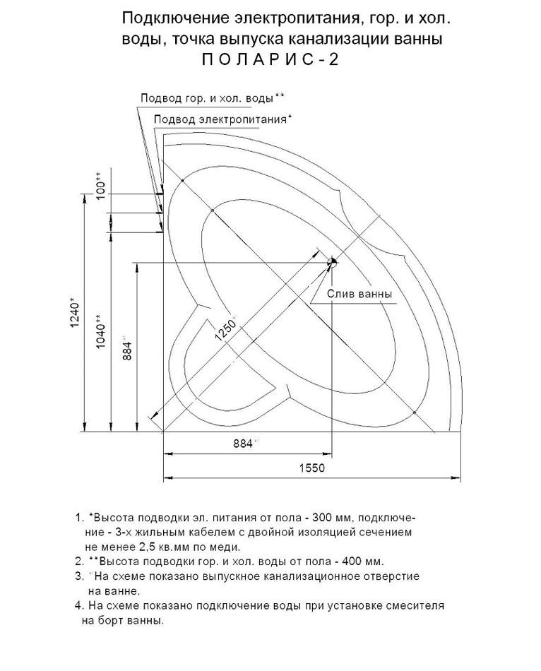 Выбирая акриловую ванну в четверть круга, присмотритесь к Aquatek Поларис 2 155х155. Имеет большое внутреннее пространство. Отлично подходит для двоих. Обратите внимание на глубокое сиденье для душа с поддержкой поясницы. Модель незаменима в семьях с пожилыми родителями и маленькими детьми. Ванну отличает функциональность в сочетании с актуальным дизайнерским стилем.