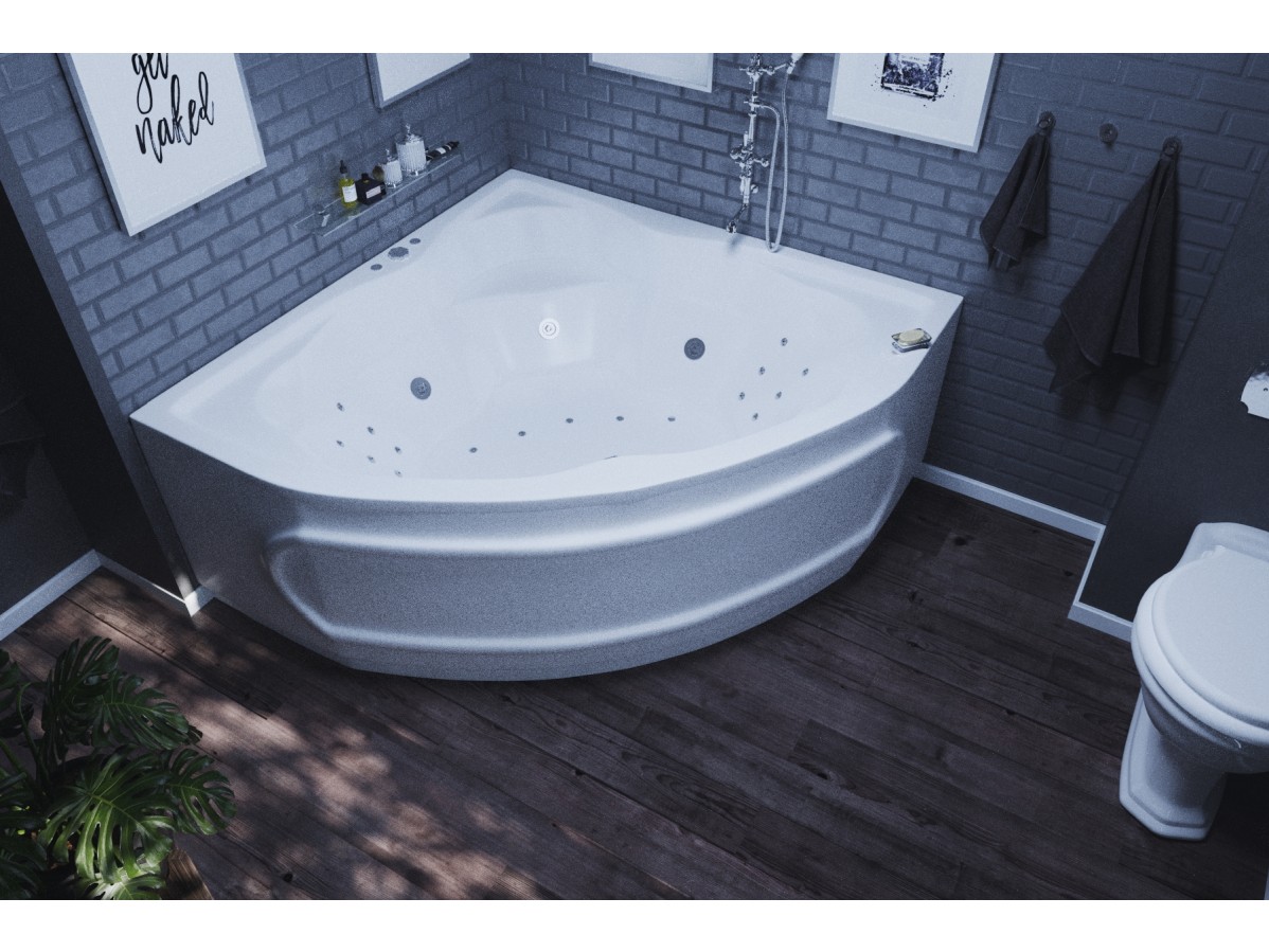 Большая и удобная угловая ванна 164х164 Сириус обладает высокой прочностью и красивыми формами дизайна. Покрытие долго сохраняет идеальное состояние, не меняет цвет и выдерживает значительные нагрузки. А низкая теплоотдача материала обеспечивает длительное сохранение температуры воды без дополнительного подогрева.