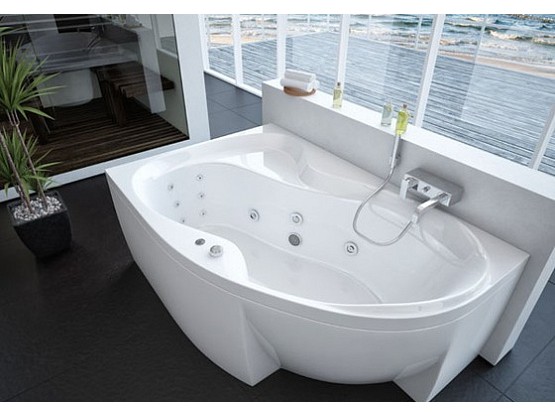 Особенность угловых изделий заключается в том, что они могут быть установлены в небольших помещениях. При этом вы будите чувствовать максимальный комфорт от такого размещения. Ванна акриловая асимметричная 170х105 Вега имеет объем 270 литров и свободно помещается в относительно небольшой комнате.