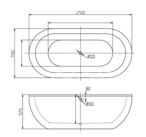 Расположение слива: посередине дна ванны