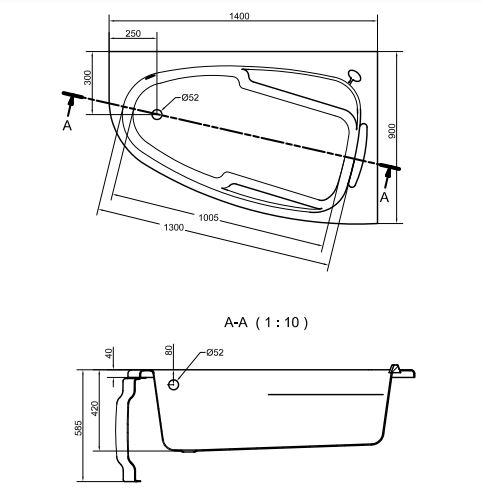 Ванна JOANNA 140*90 выполнена в современном минималистичном дизайне и обладает комфортной глубиной 41 см.
