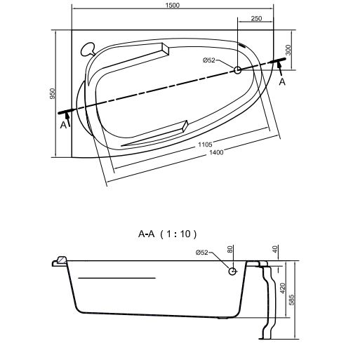 Ванна JOANNA 150*90 выполнена в современном минималистичном дизайне и обладает комфортной глубиной 41 см.