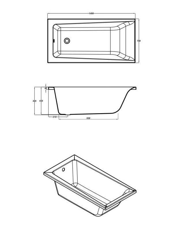 Ванна LORENA 140*70 выполнена в современном минималистичном дизайне и обладает комфортной глубиной 43,5 см.