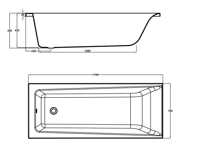 Ванна LORENA 170*70 выполнена в современном минималистичном дизайне и обладает комфортной глубиной 43,5 см.