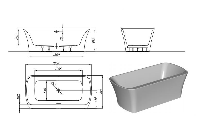 - Отдельностоящая прямоугольная ванна