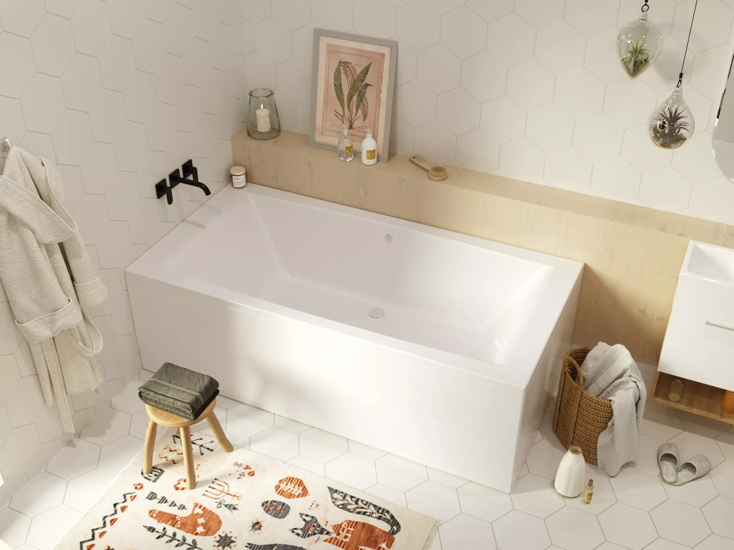 Стильная акриловая ванна, в которой продумана каждая деталь для комфортной эксплуатации. Представлена в размерах от 150 до 200 см, что позволяет подобрать лучший вариант в зависимости от индивидуальных предпочтений и особенностей пространства. Четкие прямые линии образуют вместительное пространство внутренней чаши, создавая лаконичный современный дизайн и большой полезный объем купели. К преимуществам данной модели относятся:
