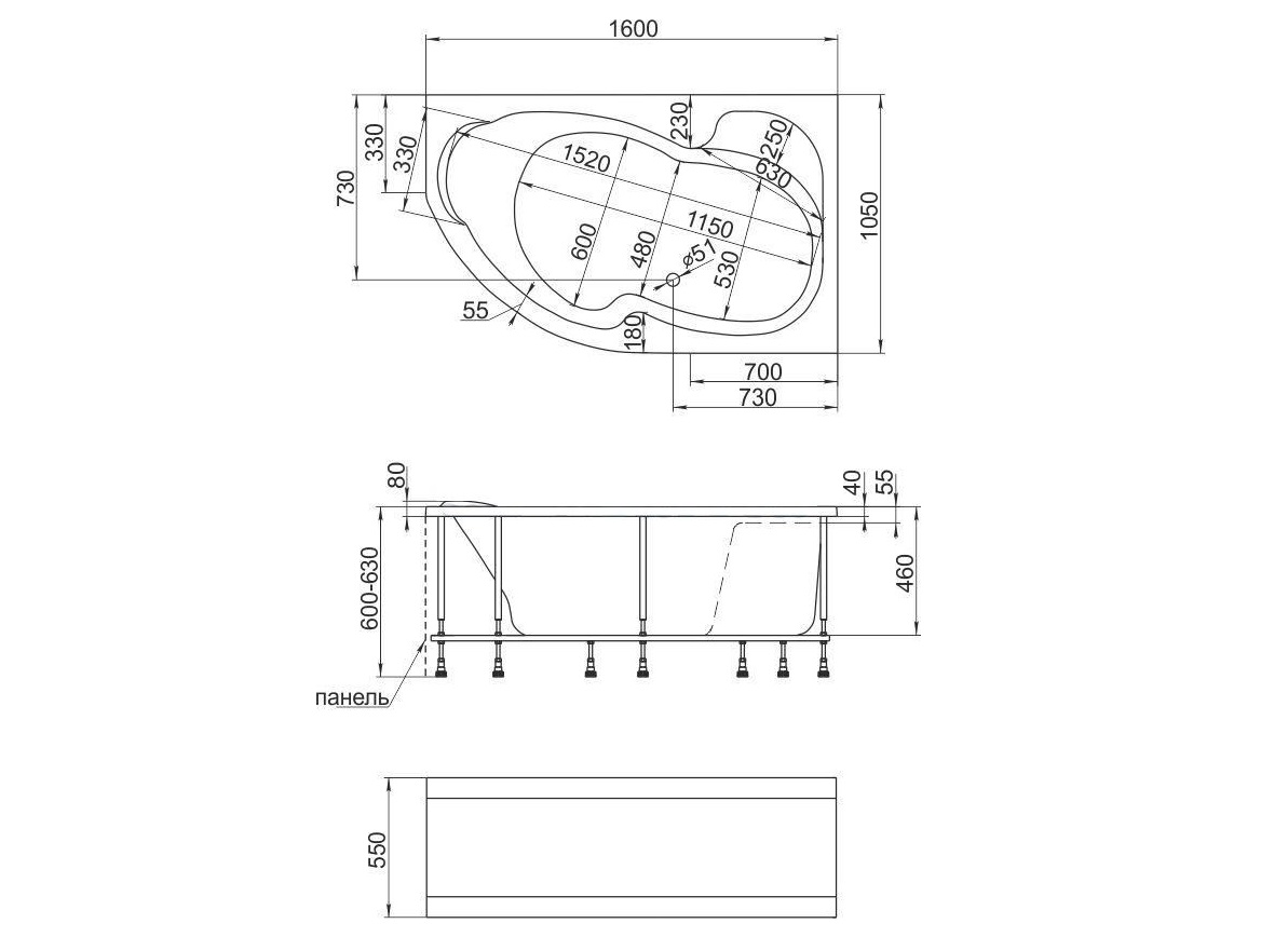- Каркас для ванны MarkaOne Aura 160x105 L/R (приобретается в комплекте с ванной)