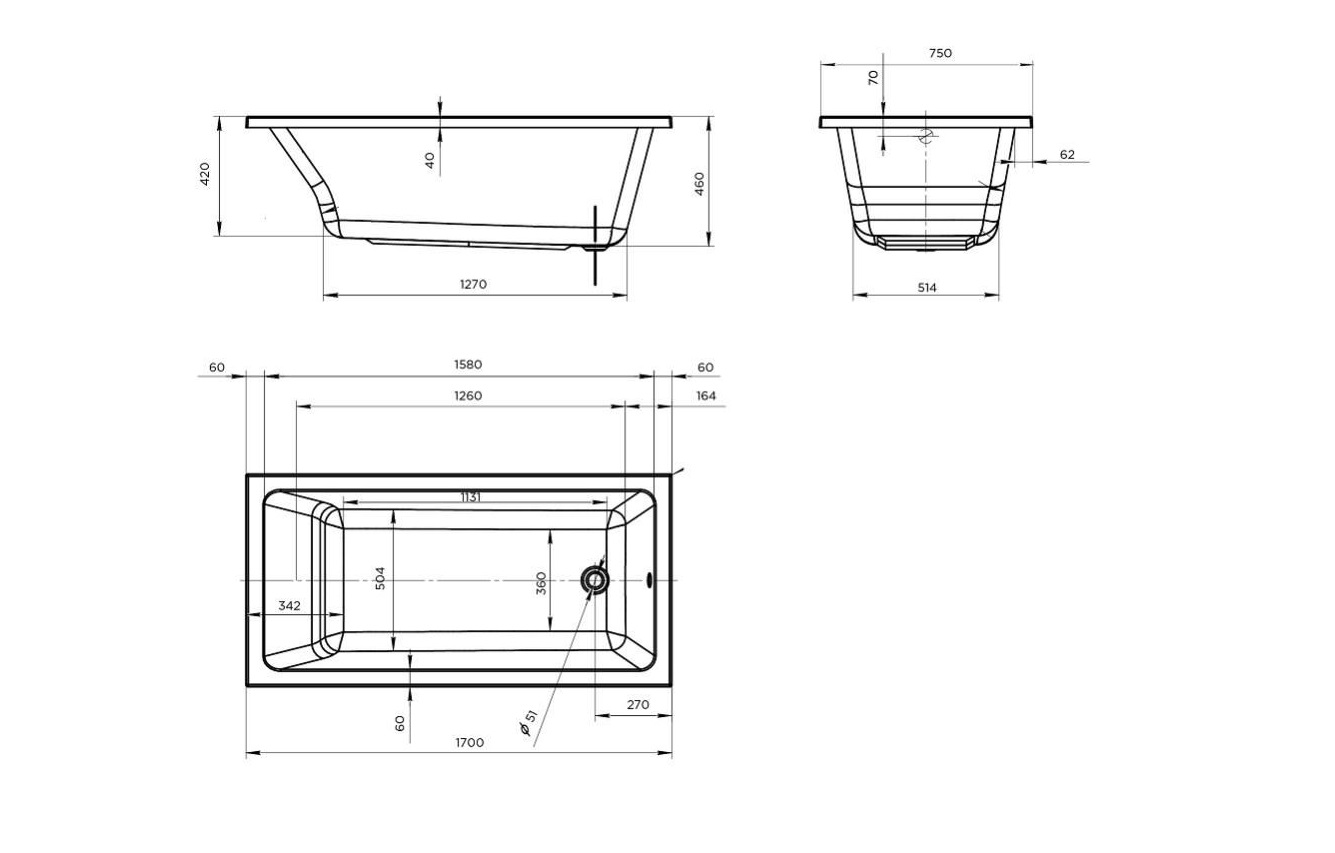 - Каркас для ванны MarkaOne 170*75 (для Modern, Bianca) (приобретается в комплекте с ванной)