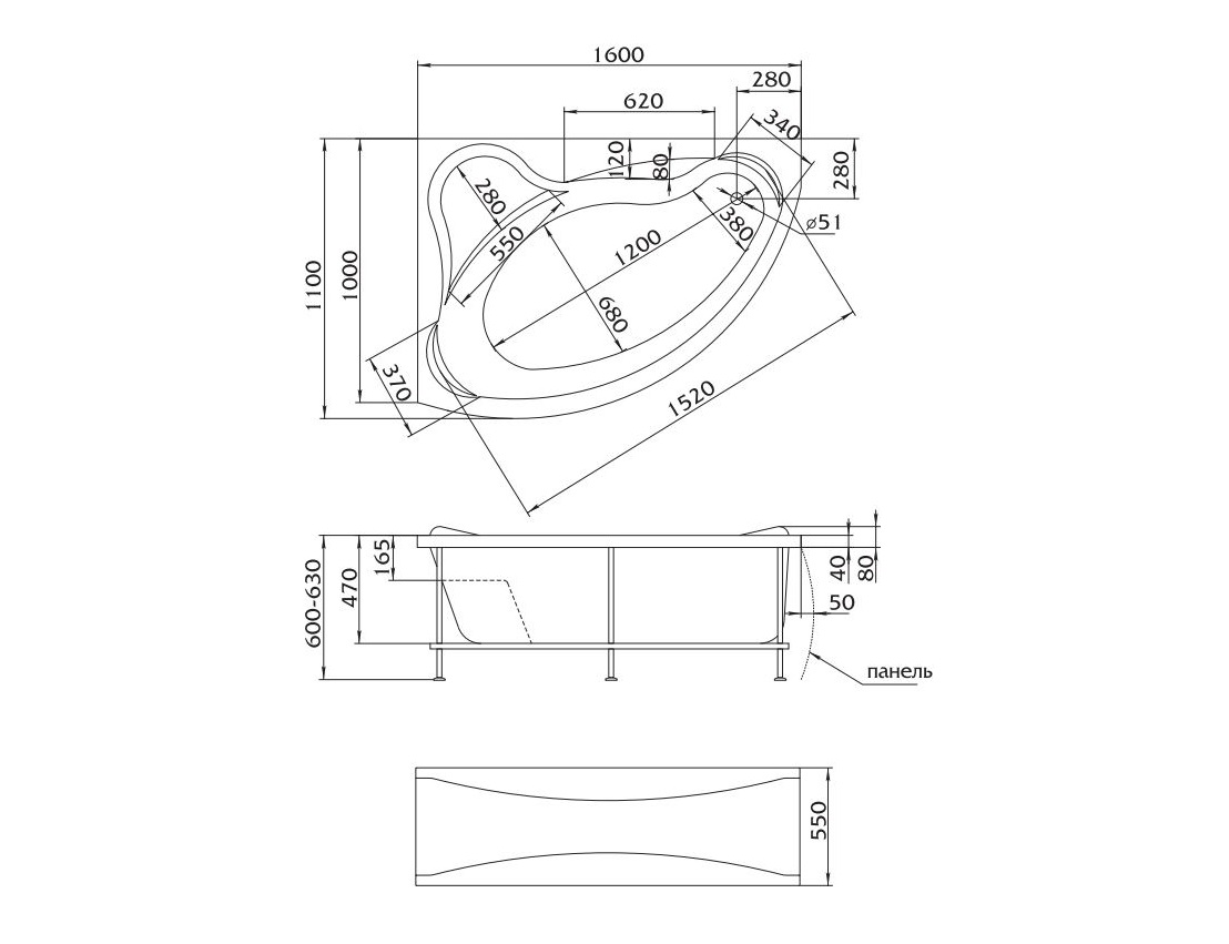 - Каркас для ванны MarkaOne Catania 160*110 L/R (приобретается в комплекте с ванной)