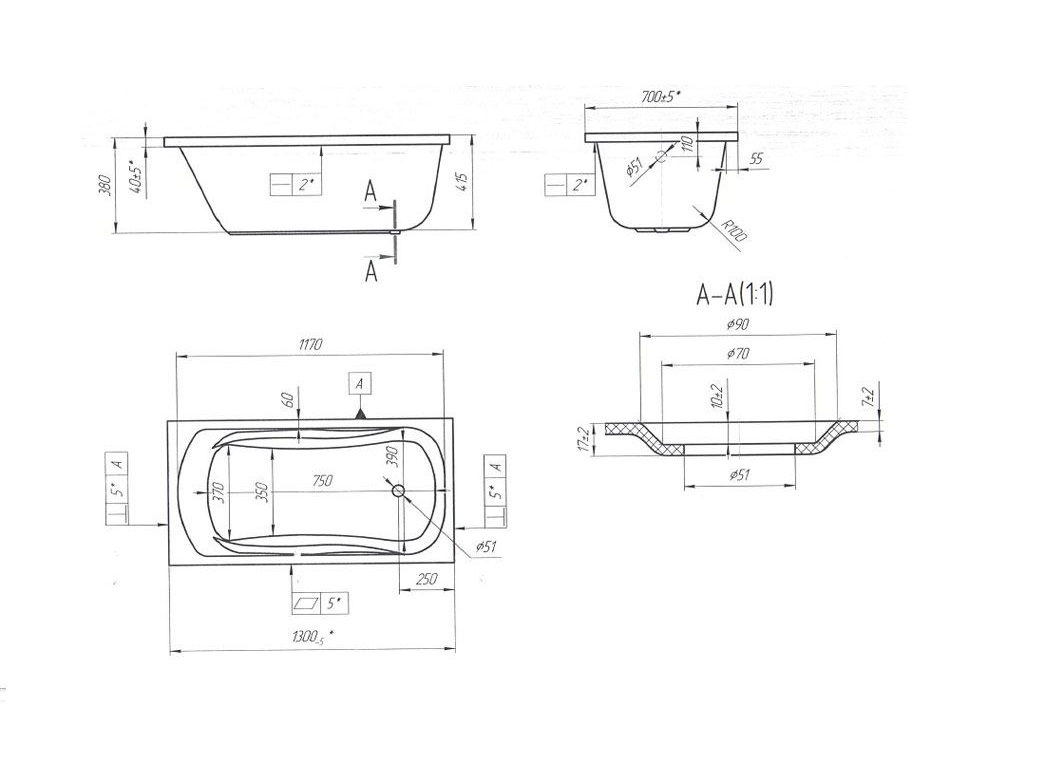 - Акриловая ванна MarkaOne Classic 130х70