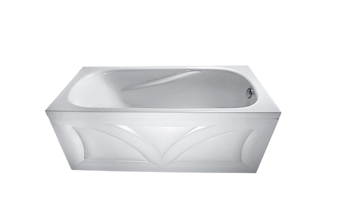 Скошенные внутренние подлокотники выполняют и практическую, и декоративную функцию – придают модели легкость и динамику. Для целостного вида стоит приобрести фронтальную панель. Она съемная. В случае необходимости доступ к коммуникациям не затруднен.