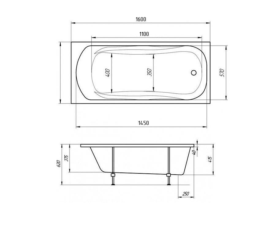 - Каркас для ванны MarkaOne 160-165*70 (для Atlas, Classic, Elegance, Modern, Vita) (приобретается в комплекте с ванной)