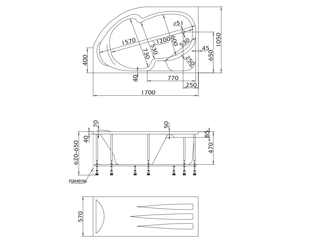 - Каркас для ванны MarkaOne Diana 170*105 L/R (приобретается в комплекте с ванной)