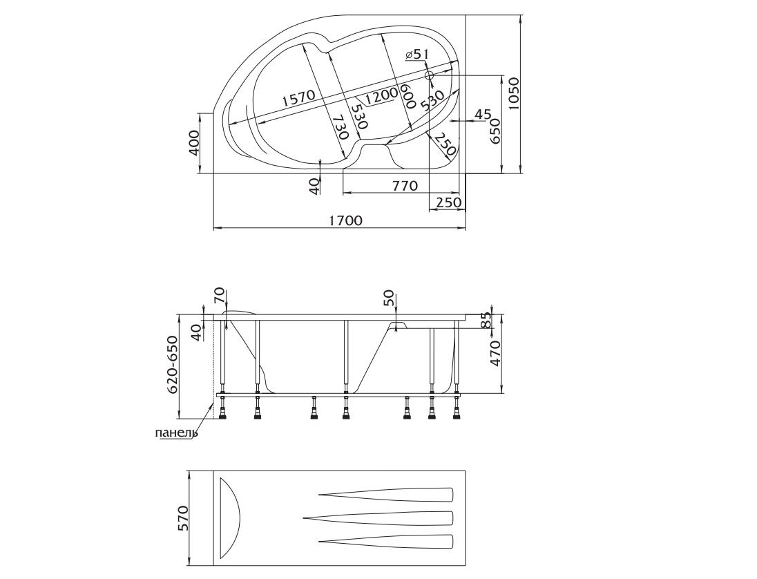 - Каркас для ванны MarkaOne Diana 170*105 L/R (приобретается в комплекте с ванной)