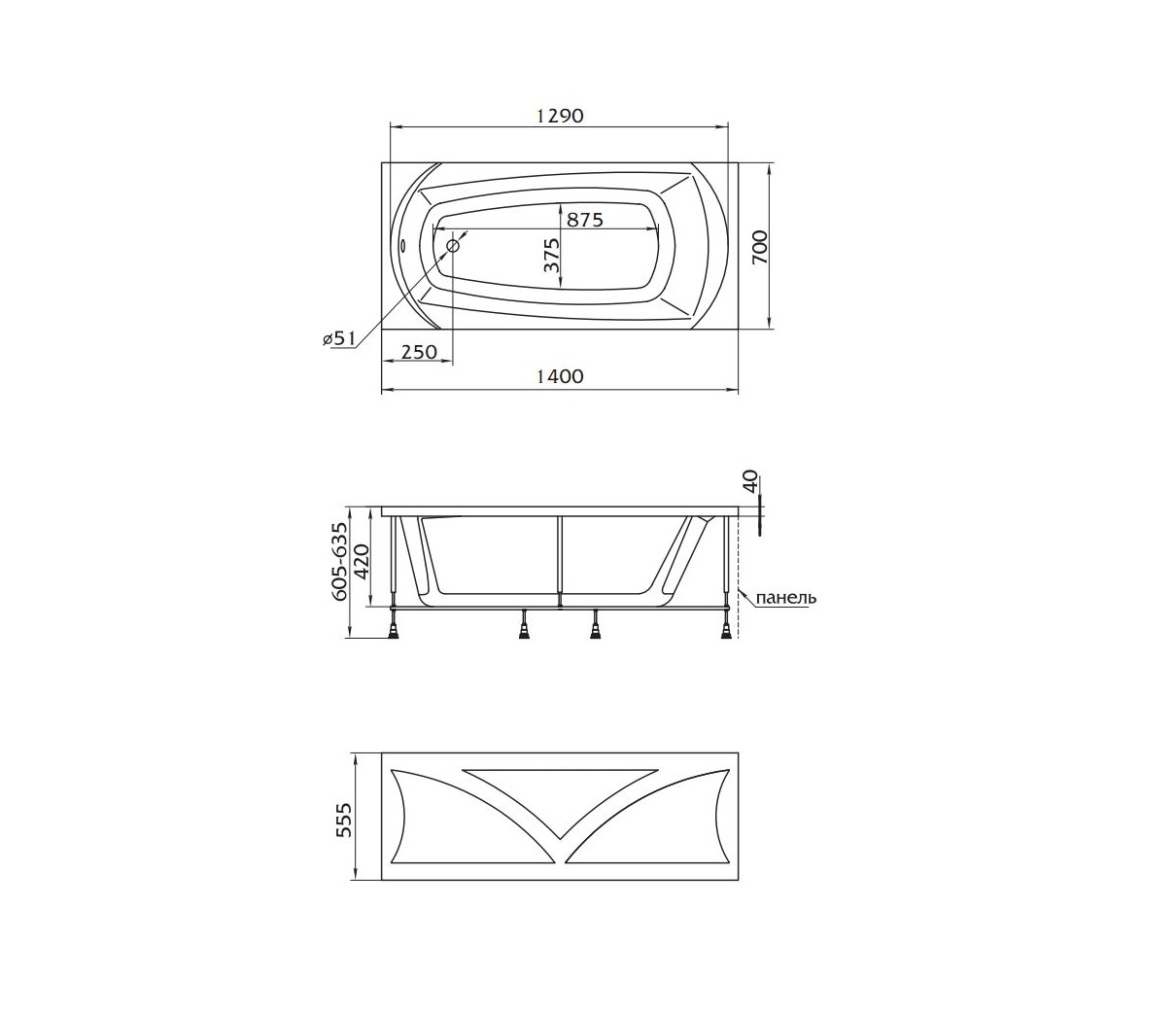 Длина ванны