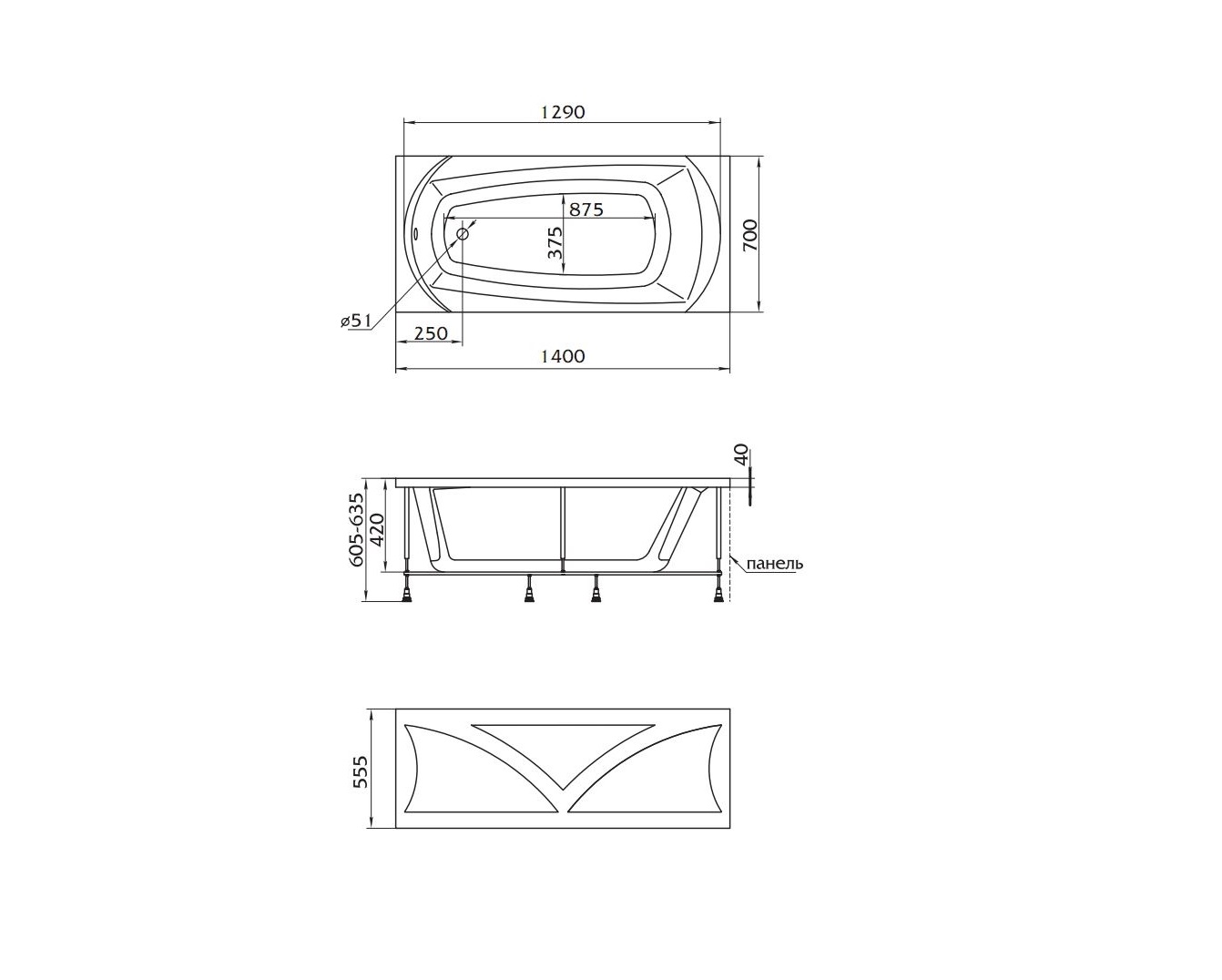 - Каркас для ванны MarkaOne 140*70 (для Classic, Elegance, Modern) (приобретается в комплекте с ванной)
