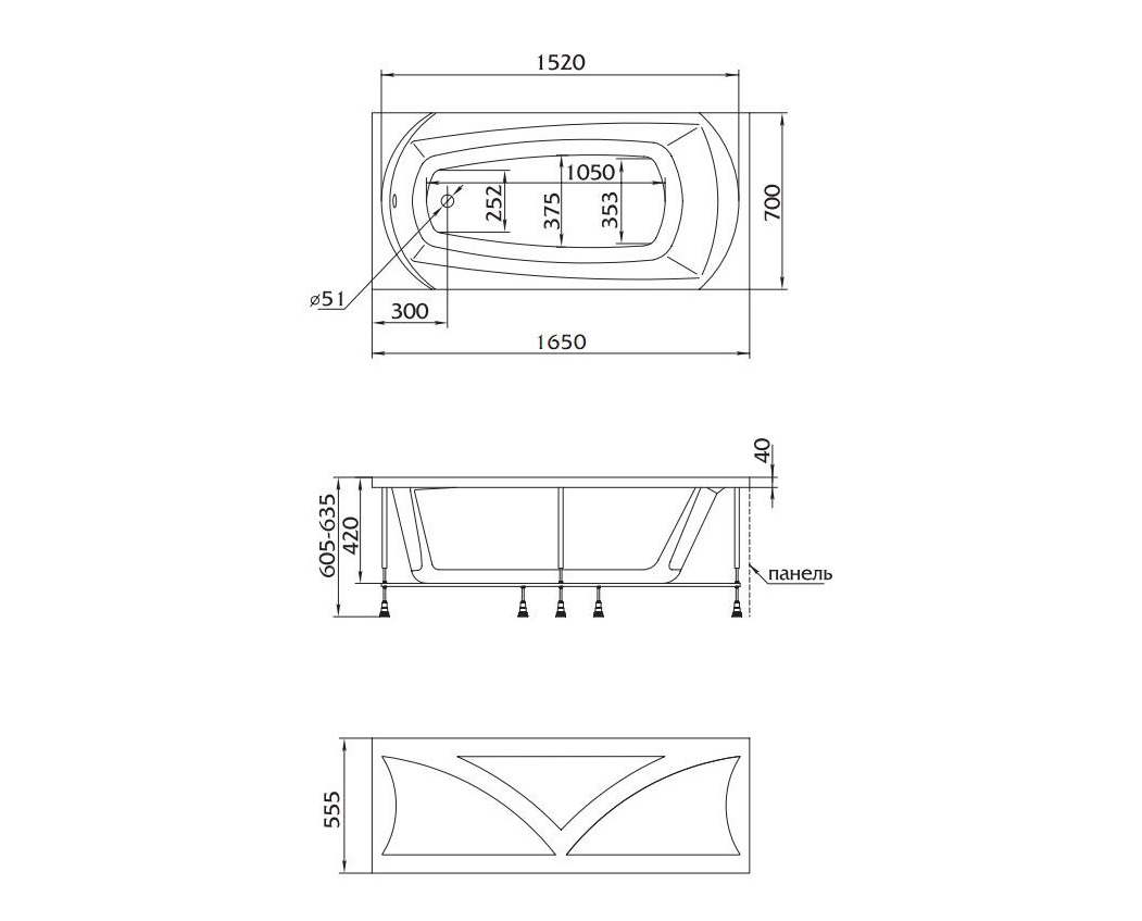 - Акриловая Ванна MarkaOne Elegance 165x70