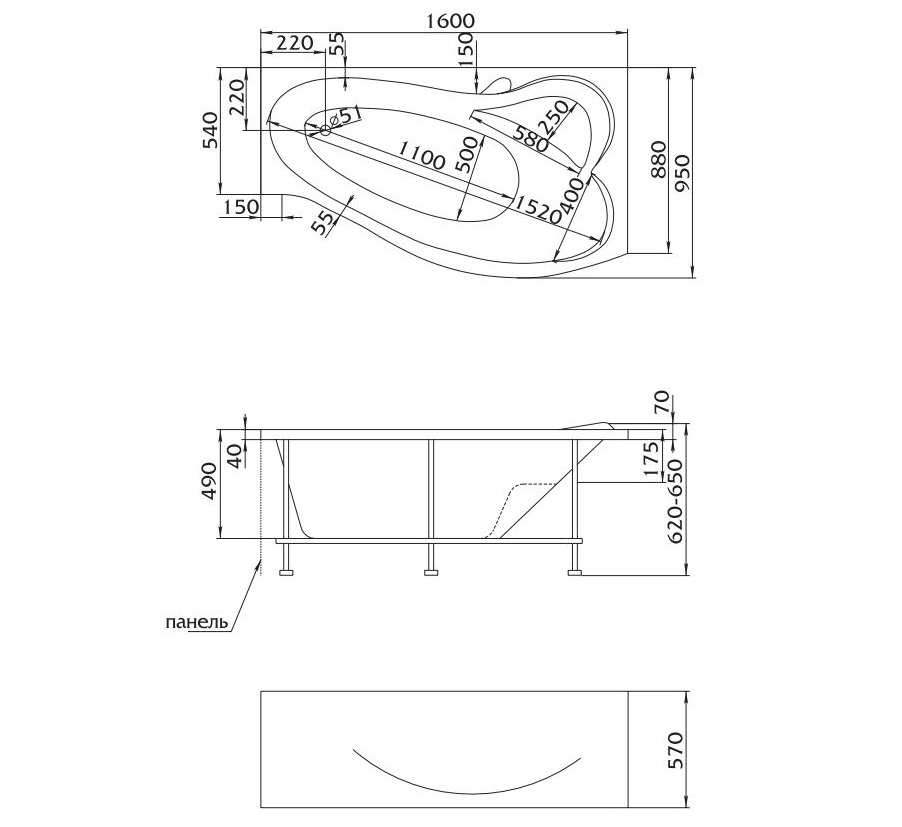 Ванна MarkaOne Gracia 160х95 – стильная асимметричная модель с плавными изящными линиями. Такая ванна отлично впишется в современный интерьер небольшого помещения. Заметьте, выбор не ограничен планировкой ванной комнаты, так как модель представлена как в левом, так и в правом зеркальном варианте.