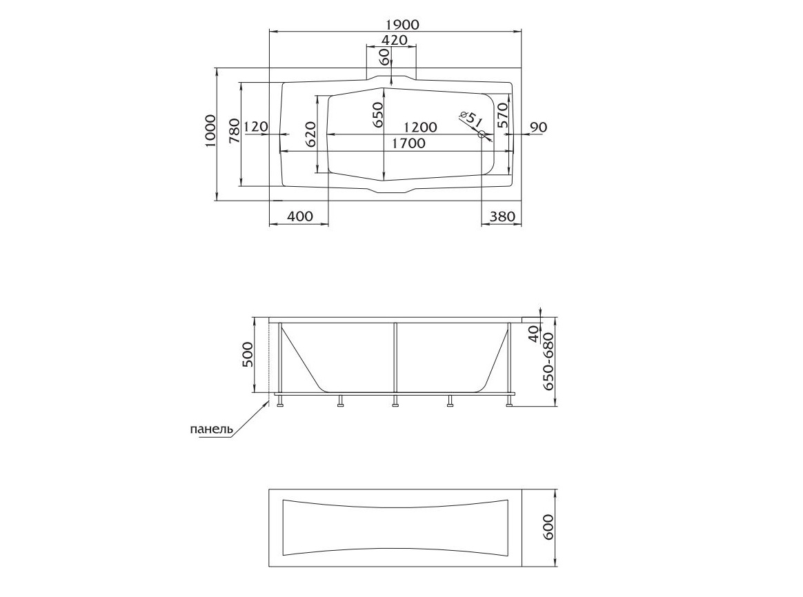 Длина ванны