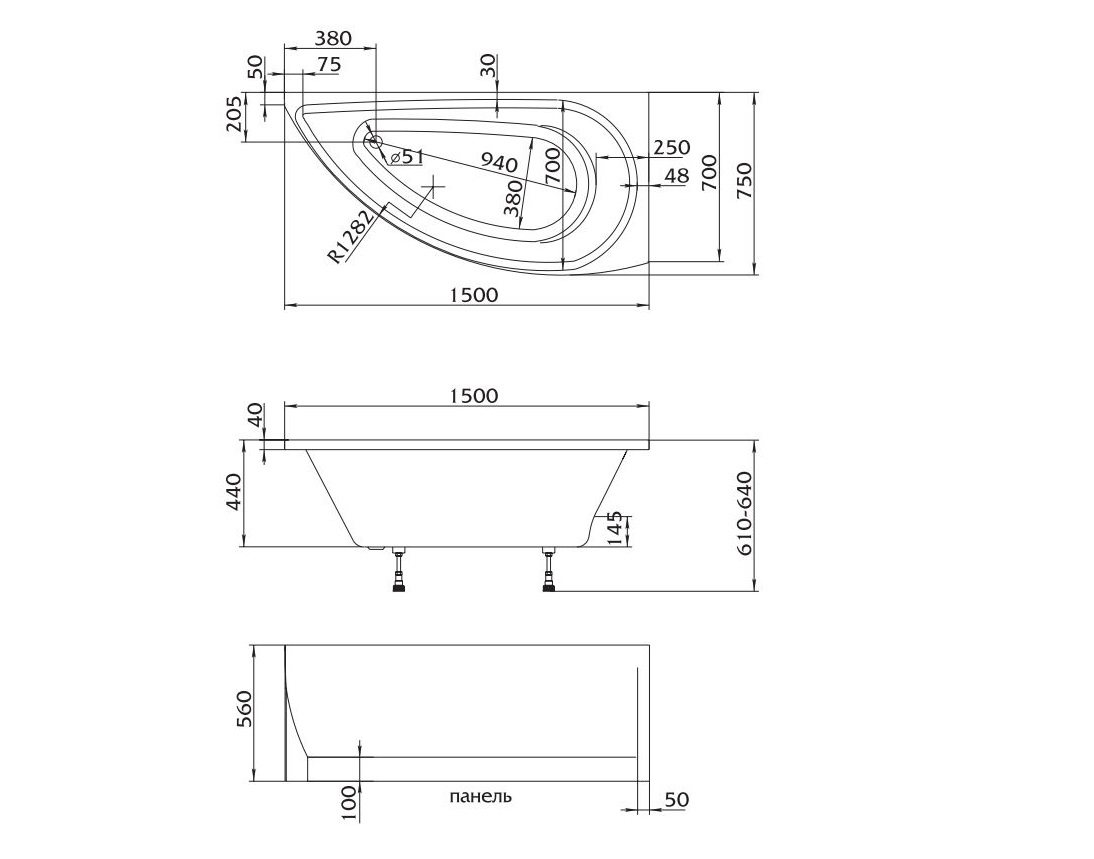 - Акриловая ванна 1Marka Piccolo 150х75 R