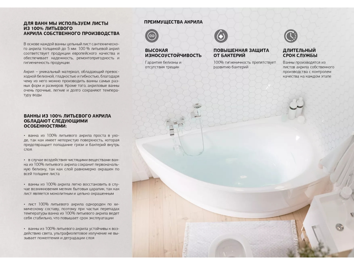 - отрезная ванна- возможность подгонки длины ванны под ваш индивидуальный размер без потери гарантии;