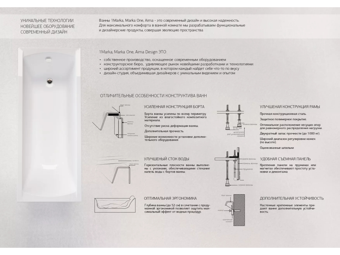 - отрезная ванна- возможность подгонки длины ванны под ваш индивидуальный размер без потери гарантии;