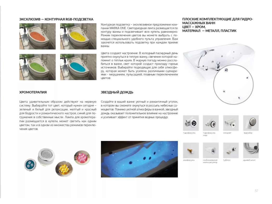 - удлиненная купель в области ног - комфортное расположение тела в ванне;