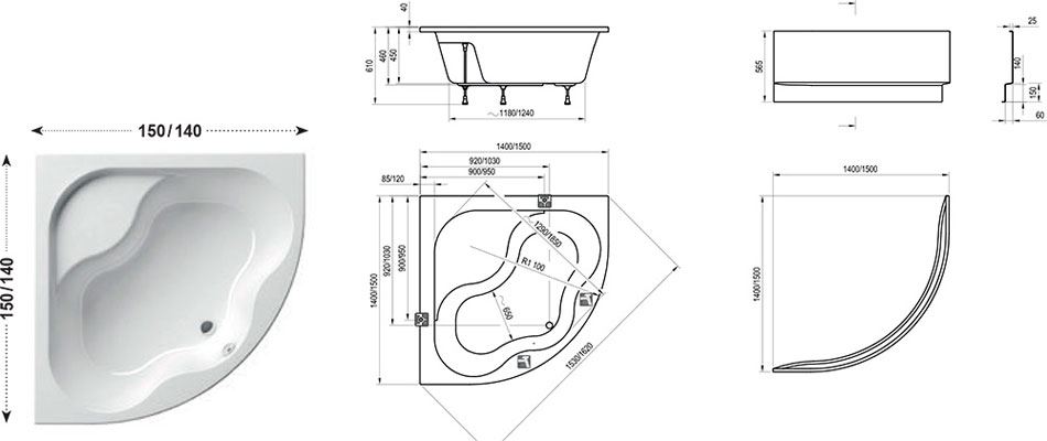 Угловая ванна Ravak Gentiana 140х140 четверть круга выполнена из высокопрочного и износостойкого материала – 100% литьевого акрила. Дополнительно армируется стекловолокном и устанавливается на каркас. Дизайнеры не стали уменьшать толщину бортов для придания легкости. Ванна и так смотрится очень изящно за счет своей формы. Подчеркнуть элегантность позволит фронтальная панель. Внутренняя поверхность – идеально белая и блестящая. Антибактериальные свойства упрощают уход. Производитель позиционирует эту модель как лучшее решение для создания wellness-зоны на дому.