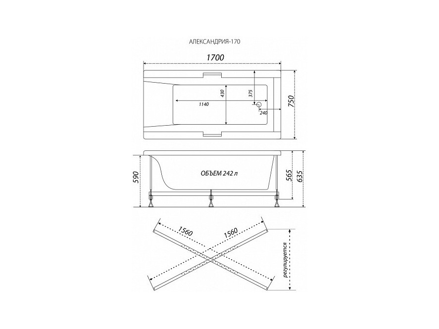 Акриловая ванна Triton Алекса 170x75 - арт. Щ0000049164.