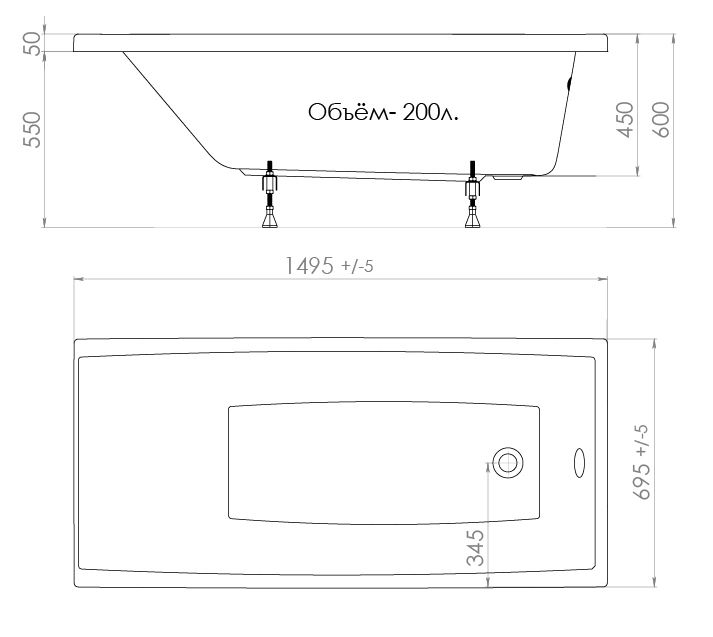 Для облегчения монтажа ванны в ограниченном пространстве ванной комнаты и в соответствии с ТУ, размеры изделия могут отличаться, по габаритной длине: -1%+0,2%, по габаритной ширине: -2%+0,2%