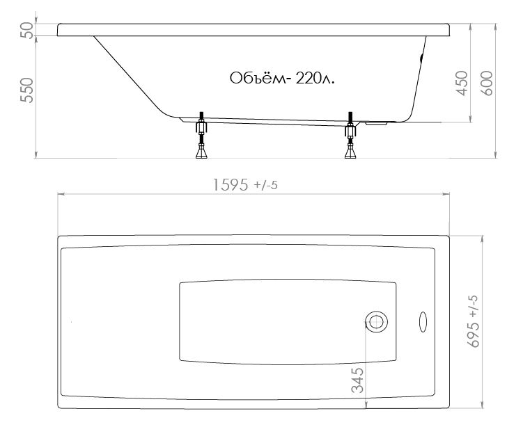 Для облегчения монтажа ванны в ограниченном пространстве ванной комнаты и в соответствии с ТУ, размеры изделия могут отличаться, по габаритной длине: -1%+0,2%, по габаритной ширине: -2%+0,2%