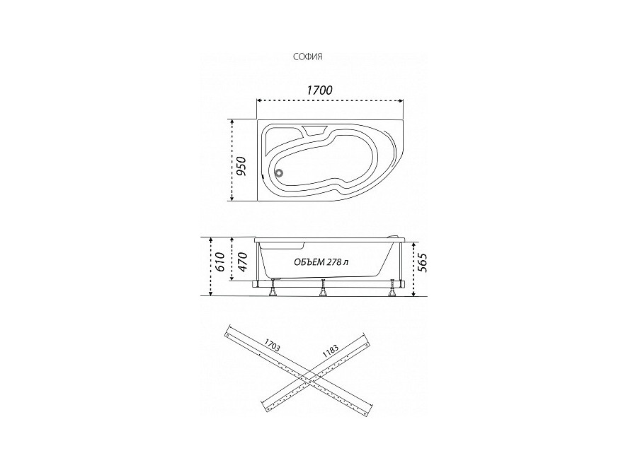 Акриловая ванна Triton София 170x95 L - арт. Щ0000046115.