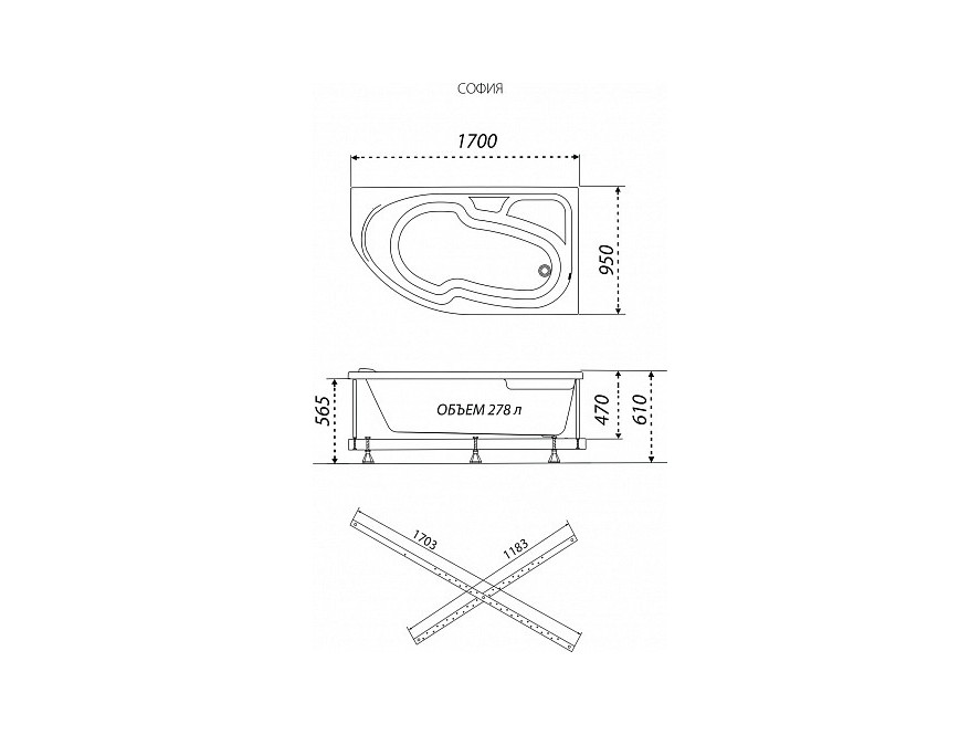 Акриловая ванна Triton София 170x95 R - арт. Щ0000046120.