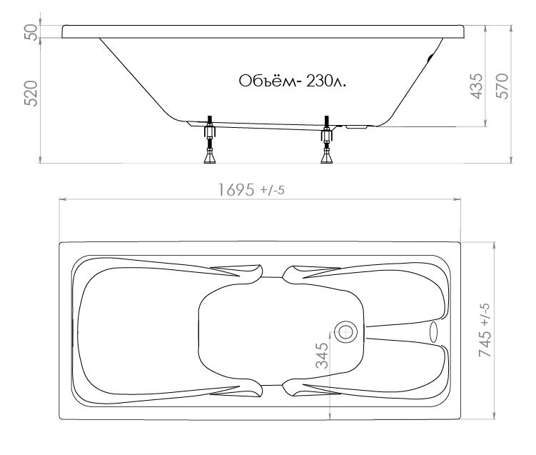 Для облегчения монтажа ванны в ограниченном пространстве ванной комнаты и в соответствии с ТУ, размеры изделия могут отличаться, по габаритной длине: -1%+0,2%, по габаритной ширине: -2%+0,2%