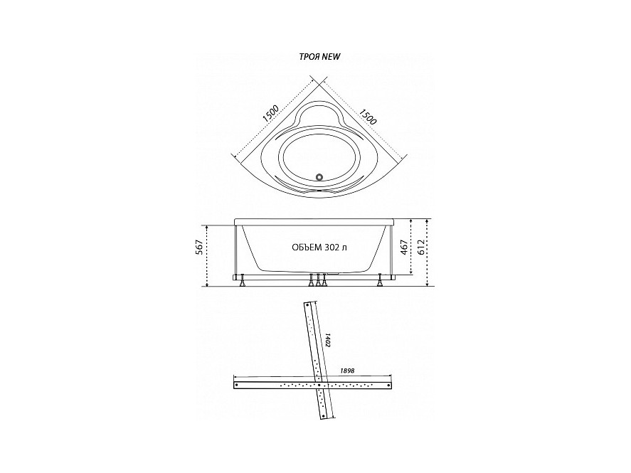 Акриловая ванна Triton Троя New 150x150 - арт. Щ0000045648.