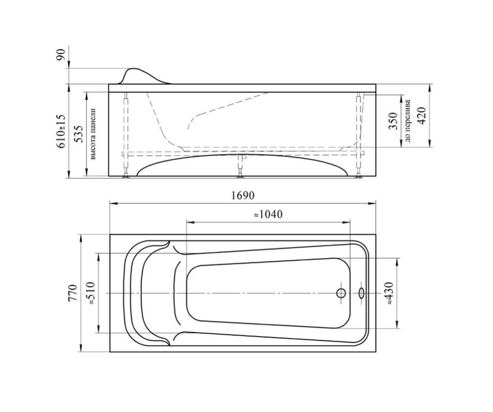 Акриловая ванна «Роза» 169х77 имеет прямоугольную форму и хорошо подойдет для стандартных и малогабаритных квартир. Благодаря компактным размерам ее можно расположить около любой стены ванной комнаты.