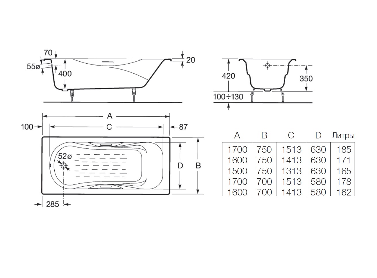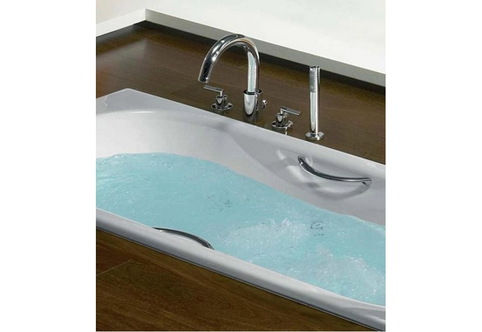 Роскошная эмалированная чугунная ванна с подлокотниками, хромированными металлическими ручками и противоскользящим покрытием дна